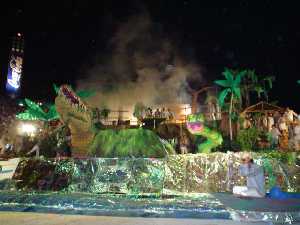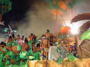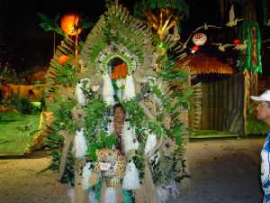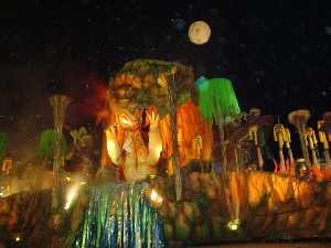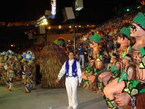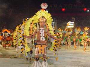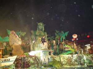 Partindo de São Luiz do Maranhão, o bumba-meu-boi chega a Parintins e transforma-se em Boi-Bumbá. Com a alegoria '