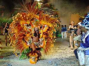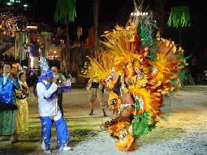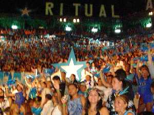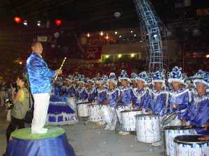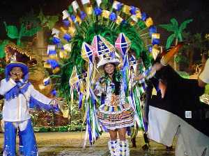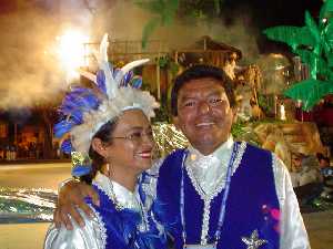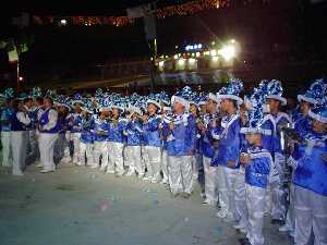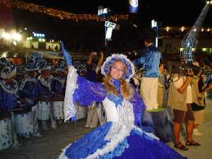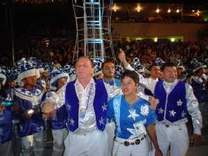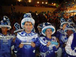 Raízes e Tradições Folclóricas', criada por Karú Carvalho, o Boi Caprichoso na noite de domingo, 29, empolgou a todos que estavam no bumbódromo. Ai começou a grande festa que dominou toda a noite Azul. A rainha do folclore, Daniele Monteiro, com trajes caipiras, dava o tom que o Caprichoso, nesta noite, viria para brincar de boi como antigamente. '
