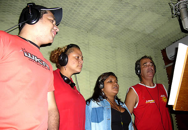No estúdio, gravando o back vocal estavam: Neto Alho, Mara Light, Márcia Siqueira e Sidney Rezende (da esquerda para a direita).